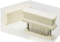 どんな肉でもこれさえ有れば筋を切って食べやすい肉に早変わり、特にお年寄りの方にお薦め、楽しくお肉をいただけます。 サイズ:145×35×高さ105mm 一列16本刃×3列