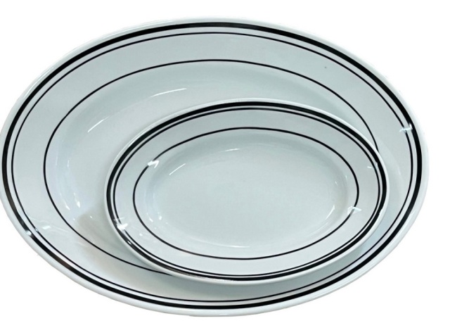 ビストロホワイト (黒 三本線) オーバルプレート グランシェフ オリジナル 小判皿